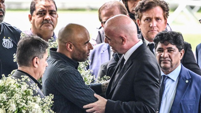 Setibanya di Stadion, Pele juga dikelilingi oleh figur-figur penting di lapangan hijau, termasuk Presiden FIFA Gianni Infantino. ia ikut memberi penghormatan terakhir atas nama FIFA kepada sang legenda.