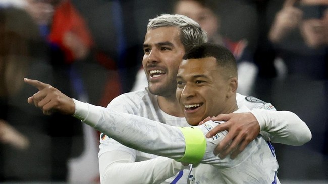 Timnas Prancis berpesta saat menjamu Belanda dalam kualifikasi Piala Eropa 2024. Les Bleus menang telak 4-0, dua gol disumbang Kylian Mbappe.