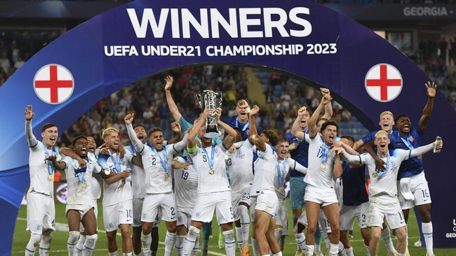 Inggris sukses menjuarai Piala Eropa U-21 usai mengalahkan Spanyol di final 1-0. Gol tunggal kemenangan Tiga Singa lahir lewat Curtis Jones.
