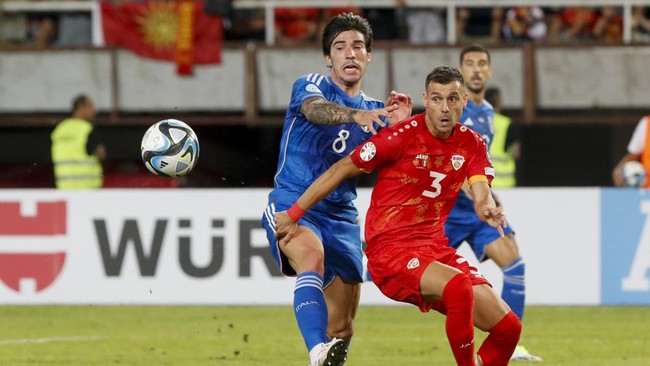 Italia ditahan imbang Makedonia Utara 1-1 di Tose Proeski Arena, Skopje, Minggu (10/9/2023) dini hari WIB, dalam lanjutan Kualifikasi Euro 2024. Unggul lebih dulu melalui Ciro Immobile pada menit ke-47, tim besutan Luciano Spalletti itu kecolongan oleh Enis Bardhi pada menit ke-81.