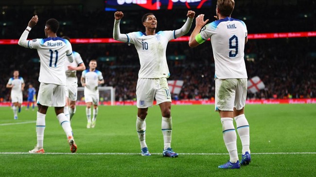 Inggris mendapatkan tiket ke Jerman setelah mengalahkan Italia di Wembley, Rabu (18/10/2023) dini hari WIB, dengan skor 3-1. Kane jadi pahlawan Inggris lewat sumbangan dua golnya dan satu gol sisanya dibuat Marcus Rashford.