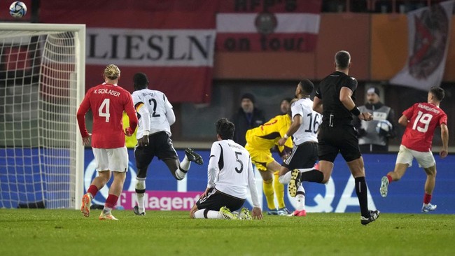 Laga Austria vs Jerman di Stadion Ernst-Happel pada Rabu (22/11/2023) dinihari WIB. Marcel Sabitzer mencetak gol pembuka Austria di babak pertama.