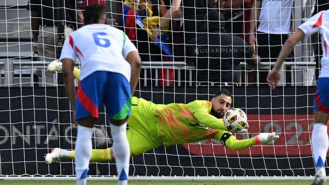 Italia sudah dihukum penalti pada menit kedua usai Alessandro Buongiorno melanggar Salomon Rondon. Donnarumma lantas sukses menggagalkan eksekusi penalti Rondon yang mengarah ke pojok kanan bawah gawang.