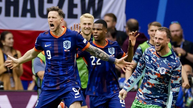 Belanda memetik kemenangan atas Polandia dengan skor 2-1 pada matchday I Euro 2024. De Oranje ketinggalan lebih dulu akibat gol Andre Buksa, bisa membalas dengan gol Cody Gakpo dan Weghorst.