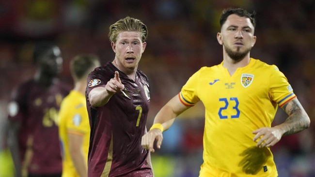 Belgia meraih kemenangan pertamanya di Piala Eropa 2024, usai membungkam Rumania 2-0. Tiga poin itu didapatkan berkat gol Youri Tielemans dan Kevin de Bruyne, dalam laga di Cologne Stadium, Minggu (23/6/2024) dini hari WIB.