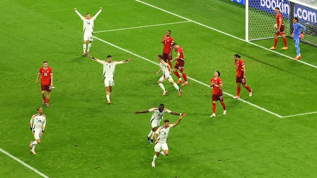 Duel Swiss vs Jerman berlangsung di Frankfurt Arena pada Senin (24/6) dinihari WIB. Dan Ndoye membuka skor di babak pertama. Keunggulan Swiss bertahan sampai menit-menit akhir pertandingan.