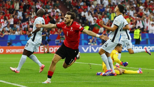 Khvicha Kvaratskhelia bersinar di Gelsenkirchen dalam Match ke-36 Euro 2024, saat membantu Georgia bikin kejutan dengan mengalahkan Portugal 2-0.