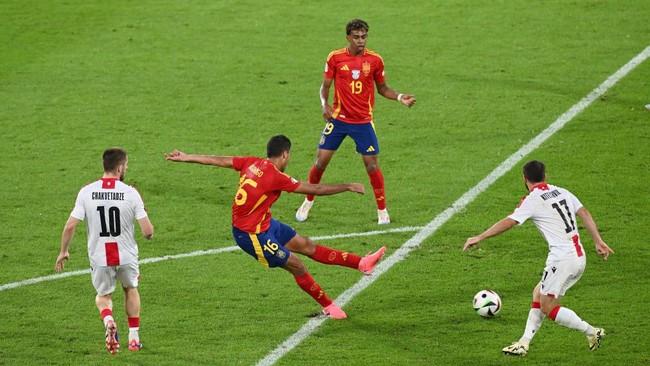 Spanyol harus berjuang keras melawan Georgia sebelum akhirnya bisa menang 4-1. Gol Rodri sebelum turun minum menjadi hal penting.