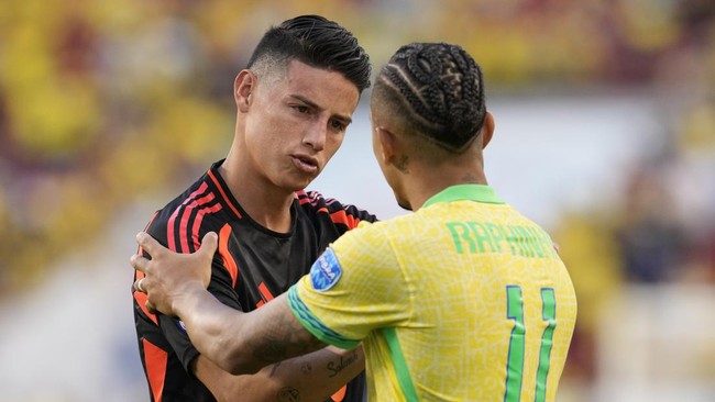 Di Levi's Stadium, Brasil vs Kolombia tuntas 1-1. Gol Raphinha dibalas oleh Daniel Munoz, dan membuat kedua tim berbagi poin.
