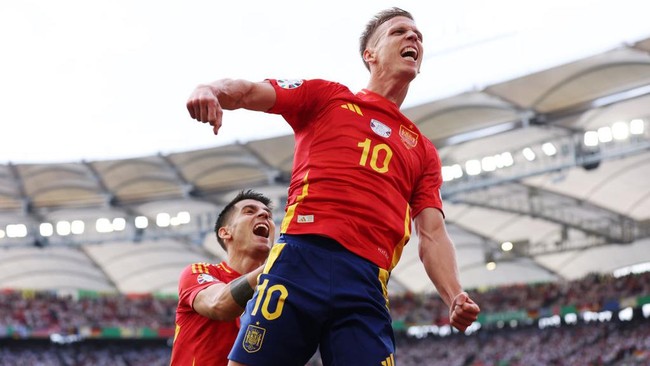 Dani Olmo tampil brilian saat membawa Spanyol menyingkirkan Jerman di Euro 2024. Gelandang serang La Furia Roja itu bikin gol dan assist.