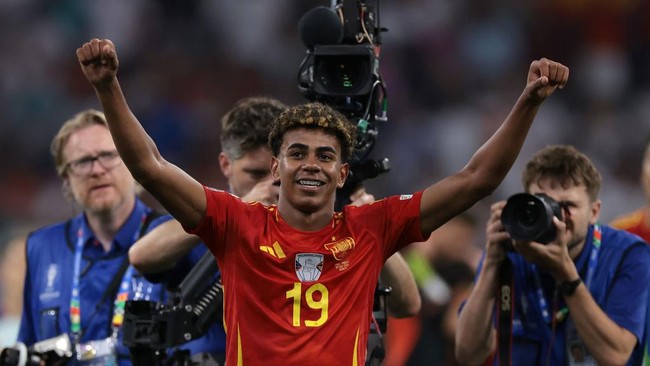 Dalam laga di Munich, Rabu (10/7) dinihari WIB, Yamal membantu Spanyol bangkit dari ketertinggalan akibat gol Randal Kolo Muani di menit ke-8. Ia mencetak gol pengimbang lewat tembakan jarak jauh pada menit ke-21.