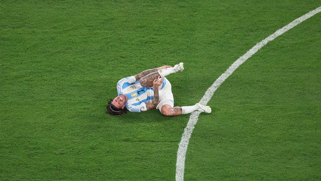 De Paul kembali melancarkan akting kesakitan di menit ke-78. Dia kala itu sedang berbaring menyamping di lapangan sebelum kena bola yang ditendang pelan Ismael Kone dari belakang.