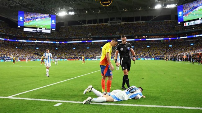 Dalam laga di Hard Rock Stadium, Senin (15/7) WIB itu, Messi terjatuh dan harus menjalani perawatan akibat berbenturan dengan Santiago Arias setelah melepaskan umpan silang di tepi area pertahanan Kolombia pada menit ke-35. Ia kemudian terkapar di luar lapangan, seperti terlihat dalam video di bawah ini.