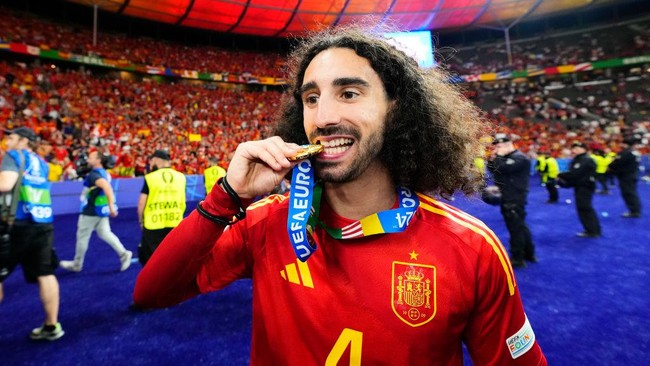 Marc Cucurella jadi salah satu pemain kunci Spanyol di Euro 2024. Cucurella menunaikan nazarnya usai membawa Matador juara, yakni mengecat merah rambut.