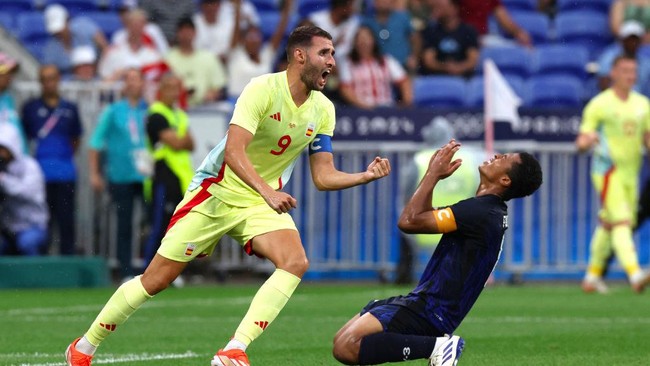 Jepang vs Spanyol pada babak perempatfinal cabang olahraga Olimpiade 2024 babak perempat final yang digelar di Groupama Stadium (Décines-Charpieu), Jumat (2/8/2024) malam. Spanyol tampil menekan.