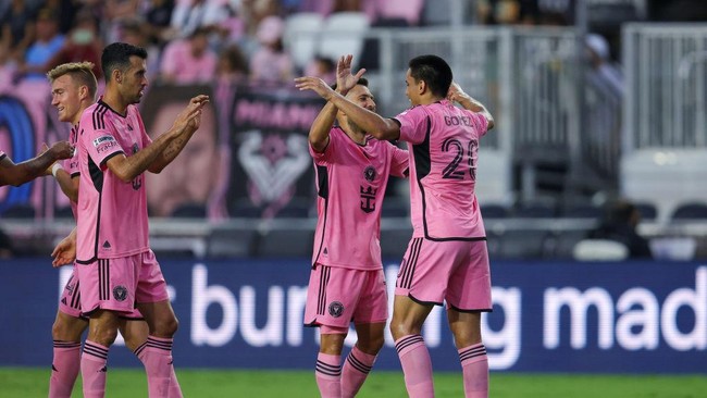 Inter Miami menang 4-3. Kemenangan ini mengantarkan Luis Suarez dkk ke-16 besar.