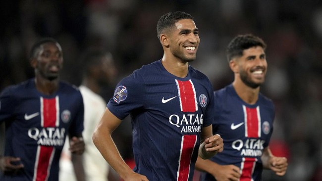 Baru empat menit laga berjalan, Bradley Barcola membuka pesta gol PSG. Marco Asensio kemudian menambah keunggulan 20 menit berselang, memanfaatkan operan Joao Neves.