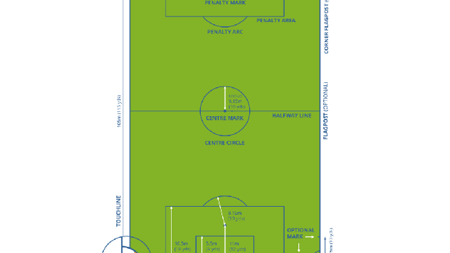 Berikut adalah rincian ukuran lapangan sepak bola nasional: