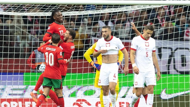 Timnas Portugal bertandang ke markas Polandia pada matchday ketiga Grup A UEFA Nations League, Minggu (13/10/2024). Tim tamu meraih kemenangan 3-1.