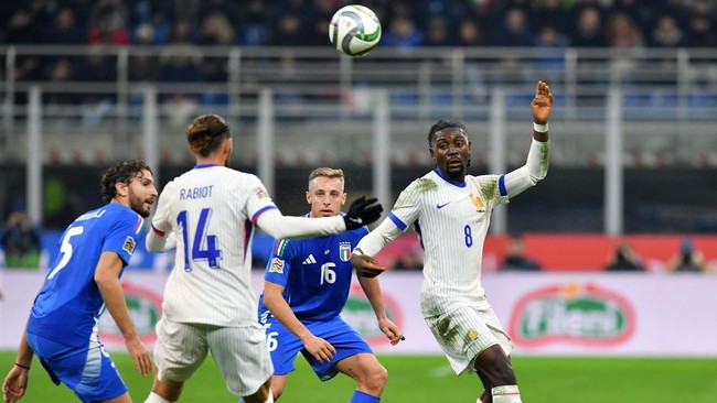 Laga Italia vs Prancis digelar di San Siro, Senin (18/11/2024) dini hari WIB. Prancis sudah unggul 2-1 pada babak pertama.