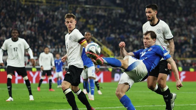Bertanding di Signal Iduna Park, Senin (24/3/2025) dini hari WIB, Jerman memimpin lebih dulu di menit ke-30. Pelanggaran Alessandro Buongiorno yang menarik kaus Tim Kleindienst di kotak penalti Italia membuat wasit Szymon Marciniak menunjuk titik putih.