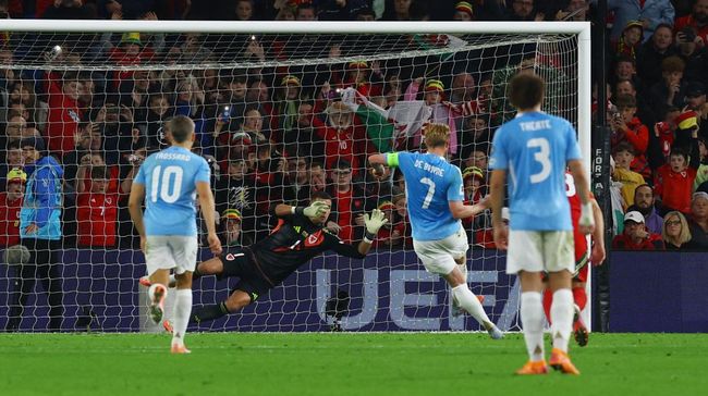 Belgia kembali ke puncak klasemen Grup J Kualifikasi Piala Dunia 2026. De Rode Duivels menang 4-2 di markas Wales, dengan Kevin de Bruyne cetak dua gol penalti.