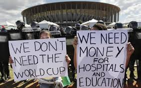 Ditimpali oleh korupsi, ketidakadilan sosial, dan kenyataan mereka harus melakukan berbagai penggusuran untuk membangun enam stadion baru, tak mengherankan kalau ada gerakan protes menentang Piala Dunia di negara yang menganggap sepakbola sebagai agama kedua mereka.