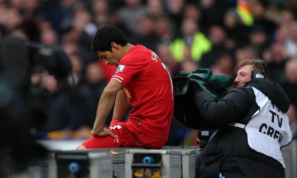 Suarez melakukannya lagi ketika membela Liverpool. Dalam pertandingan yang berakhir 2-2 melawan Chelsea, Suarez bahkan jelas-jelas menarik tangan Branoslav Ivanovic untuk digigit. Lagi-lagi ia frustasi karena bermain buruk dan tak bisa berbuat banyak dijaga Ivanovic.