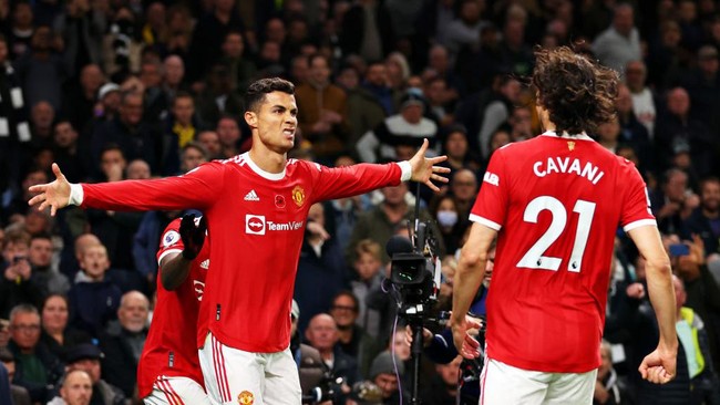 CR7 dan Cavani bermain apik saat MU tumbangkan Tottenham 3-0. Keduanya masing-masing mencetak satu gol.