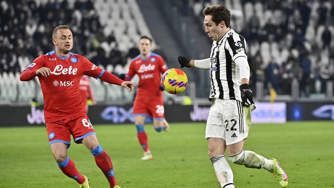 Jakarta - Laga Juventus vs Napoli selesai imbang 1-1. Napoli cetak gol lebih dulu lewat Dries Mertens, lalu dibalas Federico Chiesa usai turun minum.