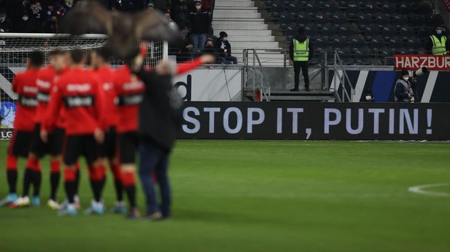 Jakarta - Ada pesan untuk Presiden Rusia Vladimir Putin di laga Eintracht Frankfurt vs Bayern Munich. Kata-kata tersebut ditampilkan di layar besar stadion dan papan iklan di pinggir lapangan.