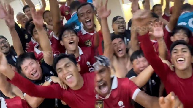 Jakarta - Timnas Indonesia sukses taklukkan Vietnam 3-2. Hasil ini memastikan Skuad Garuda lolos ke Piala Asia U-20 2023. Kemenangan ini disambut meriah para pemain di ruang ganti.