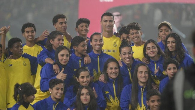 Jakarta - Cristiano Ronaldo resmi diperkenalkan klub Liga Arab, Al Nassr di stadion Mrsool Park, Arab Saudi. Ronaldo juga bertemu dengan rekan setim barunya di ruang ganti.