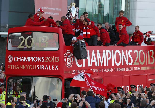 - Manchester United merayakan keberhasilan mereka menjadi juara Liga Inggris. Mereka berpawai di jalan-jalan di Kota Manchester, Inggris, Senin (13/5) waktu setempat.
