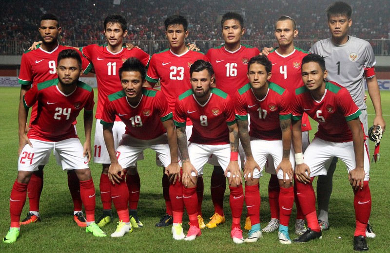 Para pemain timnas Indonesia foto bersama sebelum bertanding melawan Puerto Riko di Stadion Maguwoharjo, Sleman, Selasa (13/6/2017). Dalam laga ini Indonesia menurunkan timnas U-22 plus beberapa pemain senior. Pool/PSSI.