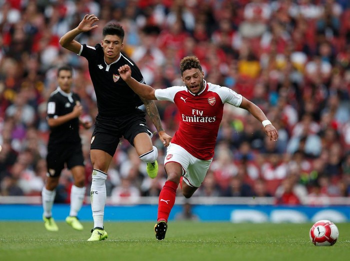 Arsenal mendapatan trofi ini dengan susah payah. Gudang Peluru kalah 1-2 dari Sevilla saat berlaga di Emirates Stadium, Minggu (30/7/2017). Mereka juara setelah sebelumnya menang telak atas Benfica. (Matthew Childs/Reuters)