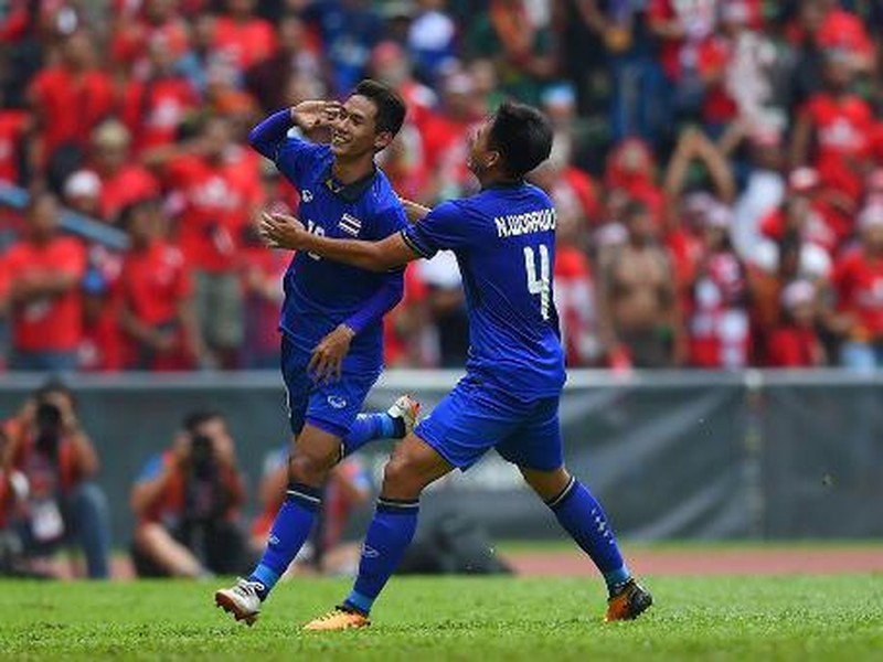Gol di menit ke-10 itu mengembangkan senyum para pendukung Thailand yang datang langsung ke Kuala Lumpur. (Foto: Manan Vatsyayana/AFP)