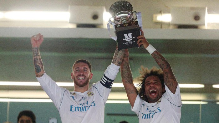 Real Madrid menjuarai Piala Super Spanyol usai mengalahkan Barcelona dengan skor 2-0 d leg kedua. Madrid menang agregat total 5-1 (Sergio Perez/Reuters)