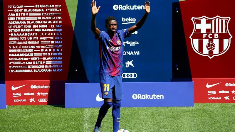 Dembele didatangkan dari Dortmund dengan nilai transfer 105 juta euro (sekitar Rp 1,6 triliun). Jumlah tersebut kabarnya bisa meningkat hingga 145 juta euro (sekitar Rp 2,3 triliun). Foto: Albert Gea/Reuters