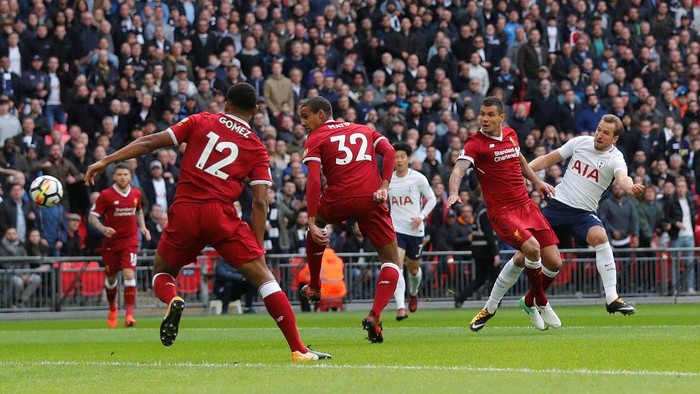 Harry Kane menjebol lagi jala Simon Mignolet pada menit ke-55 sekaligus memastikan kemenangan 4-1 timnya (Matthew Childs/Action Images via Reuters)