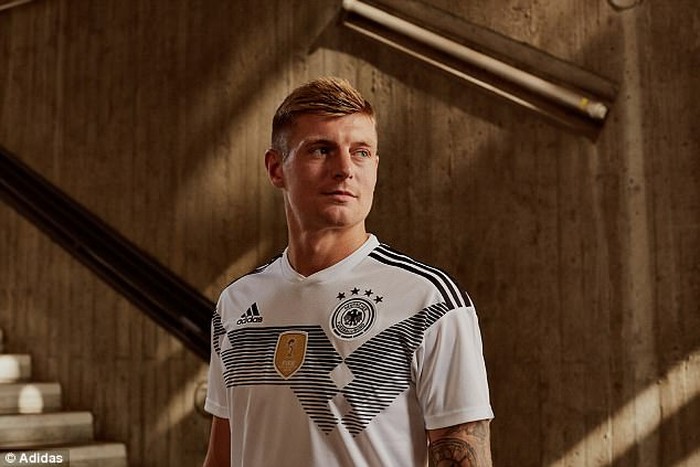 Toni Kroos muncul dalam jersey utama Timnas Jerman. Kalau Anda ingat, desain jersey ini mirip dengan yang dipakai Jerman Barat saat menjuarai Piala Dunia 1990. (adidas)