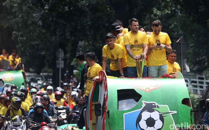 Jakarta - Sukses menjadi jawara Liga 1, Bhayangkara FC langsung melakukan aksi konvoi di kawasan PTIK, Jakarta. Yuk, intip keseruannya.