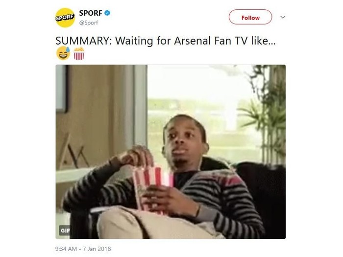 Arsenal kalah 2-4 saat bertandang ke Nottingham Forest di babak ketiga Piala FA. Tim juara bertahan pun langsung tersingkir di laga pertamanya. Warganet pun tak sabar menunggu respons fans Arsenal di Arsenal Fan TV. (Foto: Screenshot Twitter)