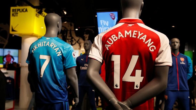 Fans sebelum laga kontra Everton di Emirates Stadium, Minggu (4/2/2018) dinihari WIB tadi, membeli jersey Aubameyang (Tony O'Brien/Action Images via Reuters)