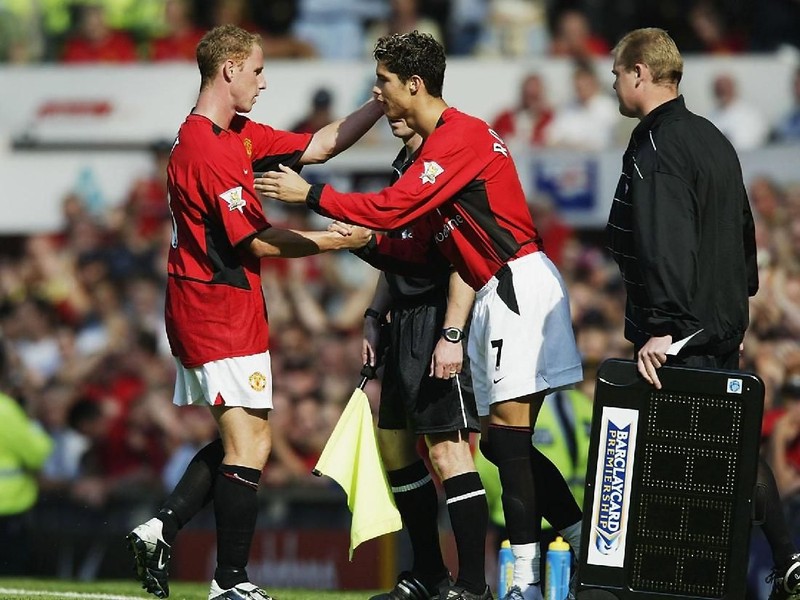 Ronaldo bergabung MU setelah meninggalkan Sporting Lisbon di musim panas 2003. Dia membuat debutnya dengan menggantikan Nicky Butt dalam laga melawan Bolton Wanderers di Premier League. Foto: Alex Livesey/Getty Images