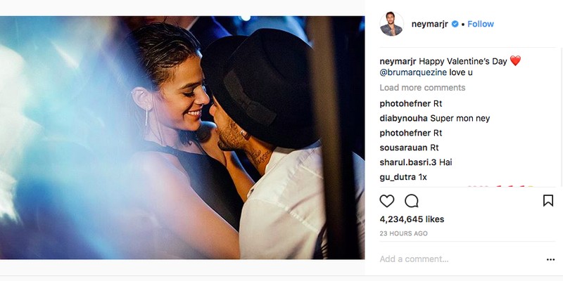 Pemain Paris Saint-Germain Neymar mendedikasikan ucapan selamat hari Valentine untuk kekasihnya tersayang Bruna Marquezine. (Foto: Internet)