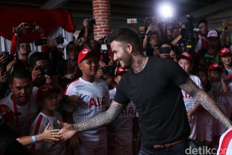 Bechkam menyapa penggemarnya, terutama anak-anak.