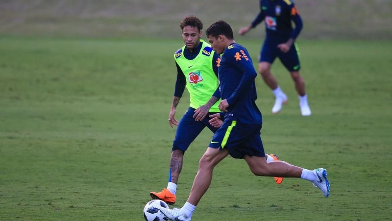 Thiago Silva (kanan) dan Neymar punya potensi untuk menjadi kapten timnas Brasil di Piala Dunia 2018. Keduanya punya peran sangat besar di dalam tim. (Foto: Buda Mendes/Getty Images)