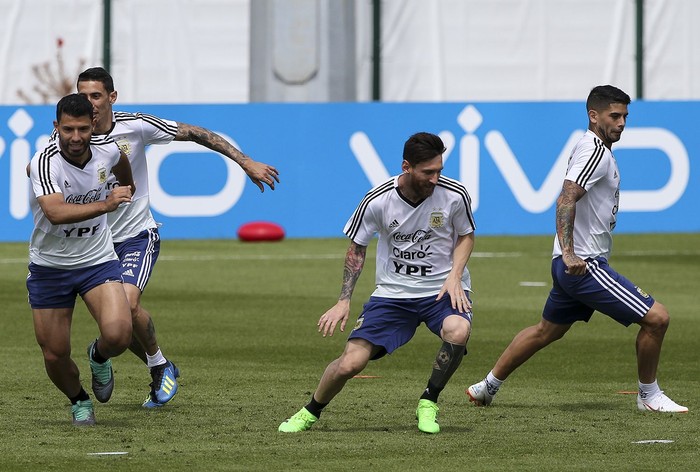 Lionel Messi muncul dalam sesi latihan yang digelar Timnas Argentina pada Minggu (24/6/2018) waktu setempat. (Gabriel Rossi/Getty Images)