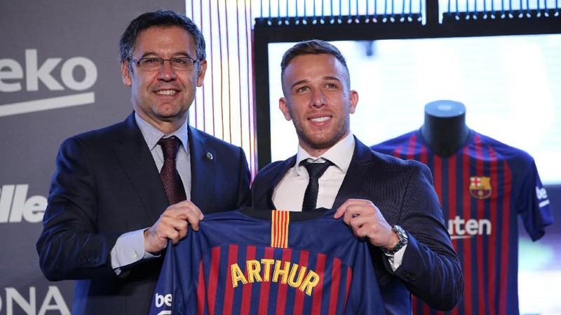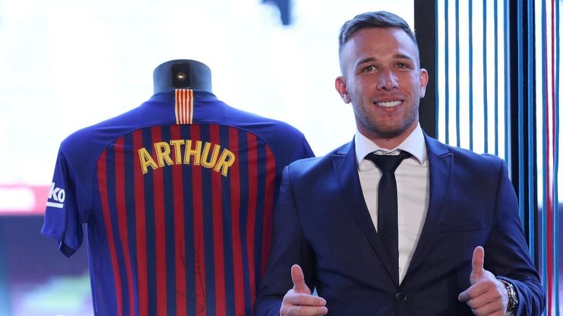Dan resmilah Arthur menjadi bagian baru Barcelona. Gelandang asal Brasil itu dikontrak selama enam musim ke depan dengan total nilai transfernya mencapai 40 juta euro. (Foto: Albert Gea/Reuters)